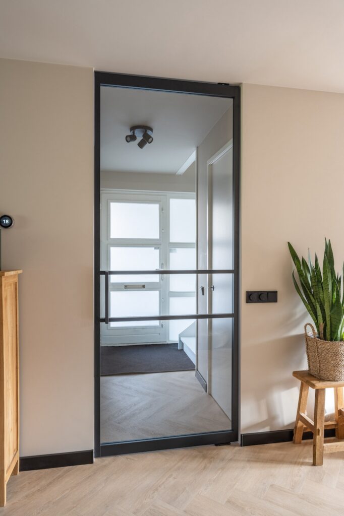 Alle binnendeuren en kozijnen zijn vervangen en strak geïntegreerd in het interieur. Ook de volledige elektra is vernieuwd, passend bij de nieuwe indeling en het gebruik van de ruimte. Wanden en plafonds zijn uitgevoerd in een doorlopende, zachte wittint, wat zorgt voor eenheid en extra ruimtelijkheid.